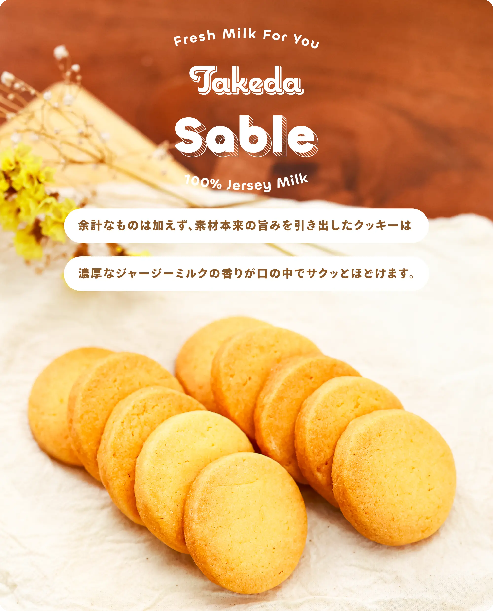 竹田牧場の乳製品はジャージー牛を中心に商品を製造しております。ジャージー牛は年間で生産できる乳量が少なく希少価値が高い牛乳です、また、ジャージー牛から絞れる牛乳は濃厚でカロチンを豊富に含むため、黄色にみえ「ゴールデンミルク」とも呼ばれています。竹田牧場こだわりの乳製品をご紹介いたします。