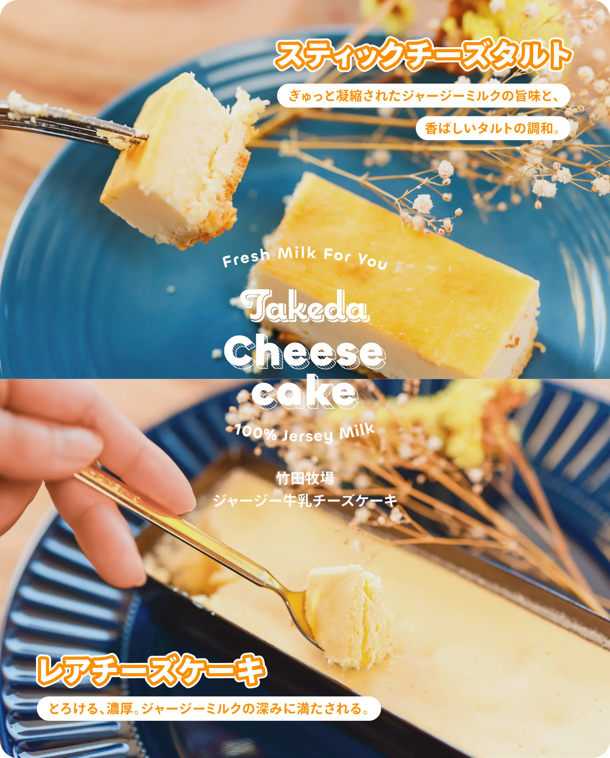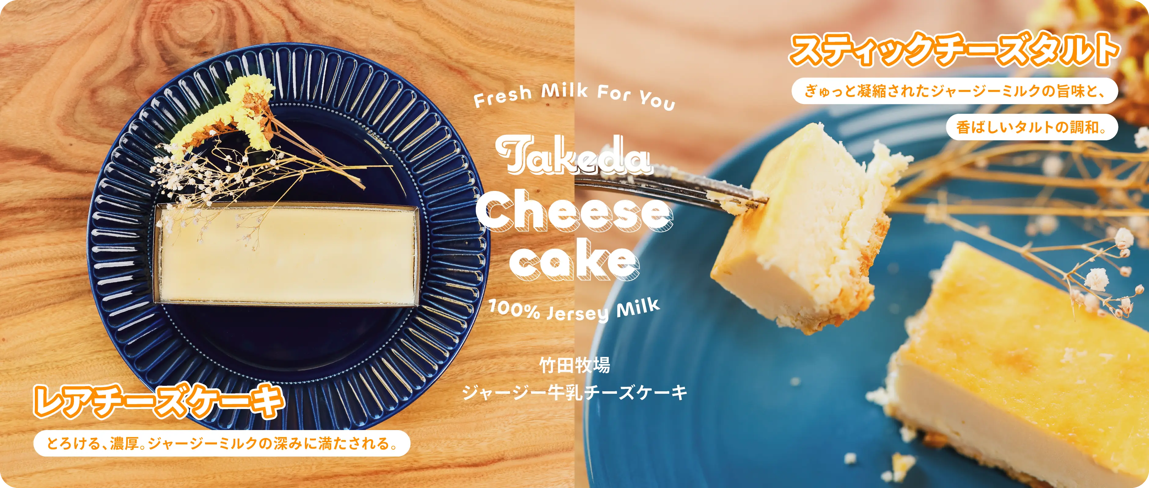 富山市にある竹田牧場にてジャージー牛から摂れた搾りたてジャージー牛乳を使用した、濃厚なチーズケーキで、なめらかな口当たりとミルキーでさっぱりとした後味の、ただ濃厚だけではないバランスのよい仕上がりになっています。