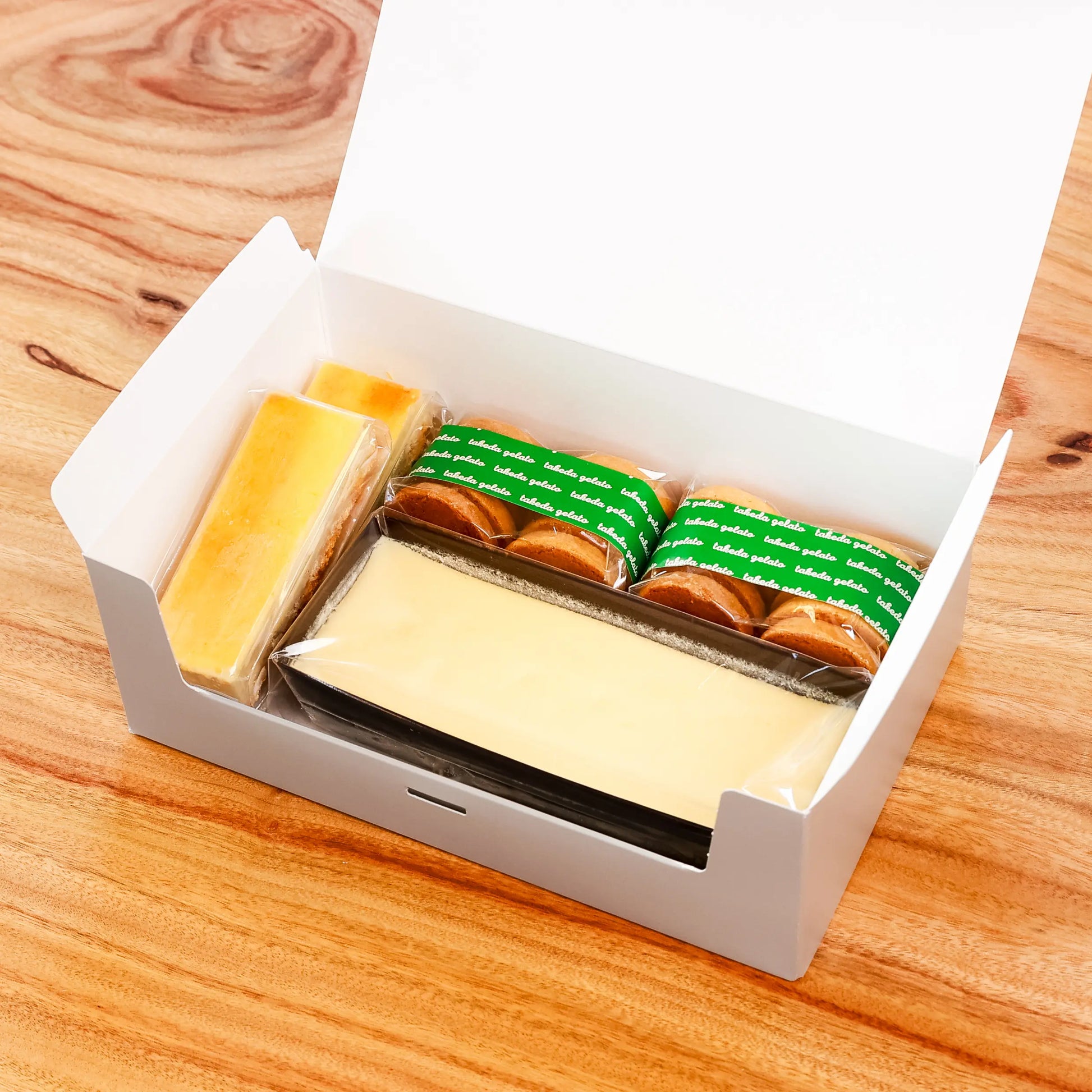 富山市にある竹田牧場で、のびのびと育ったジャージー牛のミルクを贅沢に使用した「竹田牧場ジャージー牛乳レアチーズケーキ」「竹田牧場ジャージー牛乳スティックチーズタルト」「竹田牧場ジャージー牛乳サブレ」3種をお楽しみいただけるセットです。です。